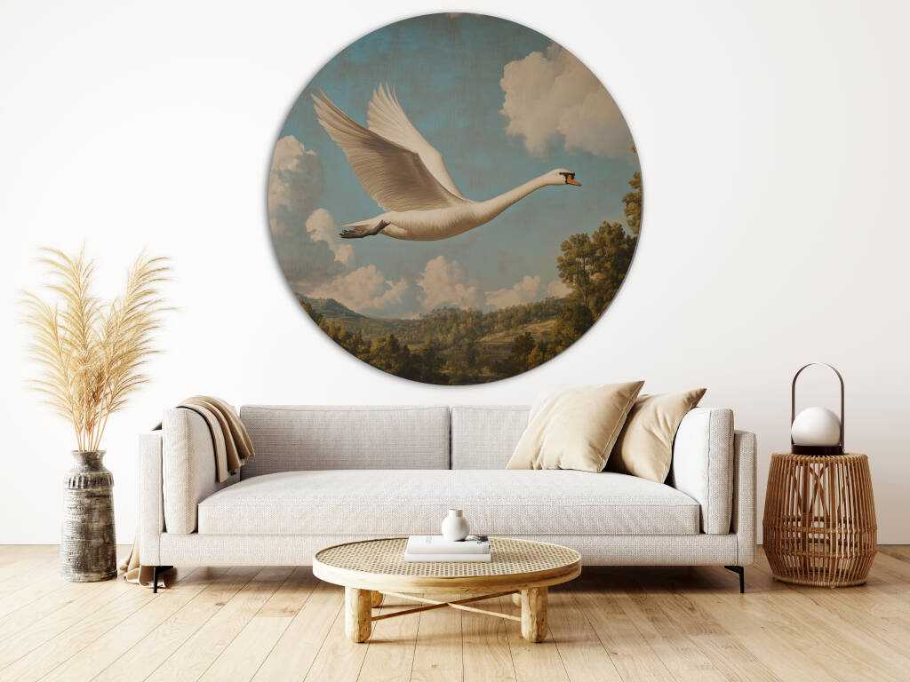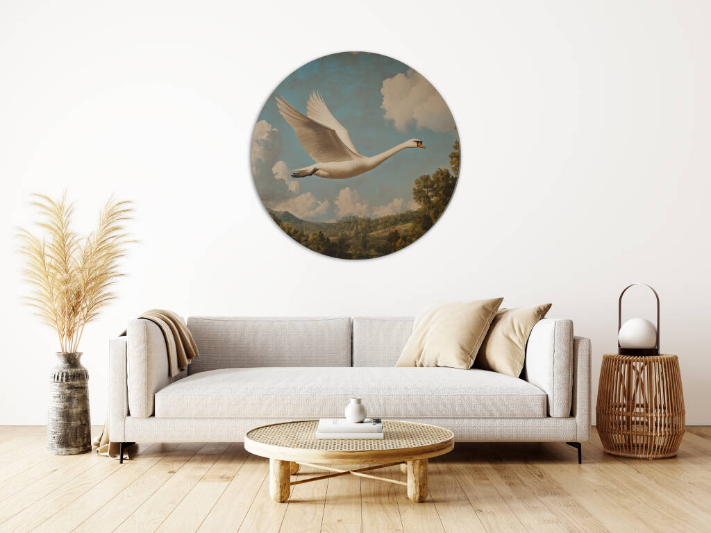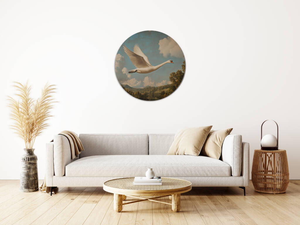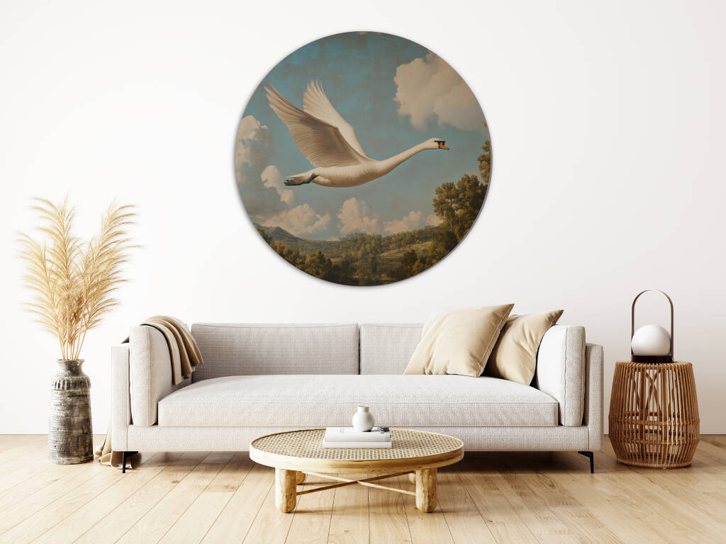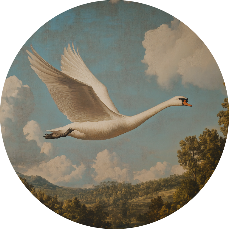 Renaissance Swan brengt de tijdloze elegantie van klassieke natuurschilderkunst naar de moderne tijd met een majestueuze zwaan die vrij zweeft boven een weids landschap. De warme aardtinten en de verfijnde schildertechniek doen denken aan de grote meesters uit de Renaissance, terwijl de serene compositie een gevoel van vrede en harmonie uitstraalt. Dit kunstwerk combineert natuurlijke schoonheid met klassieke esthetiek en is perfect voor liefhebbers van traditionele kunst en tijdloze elegantie.