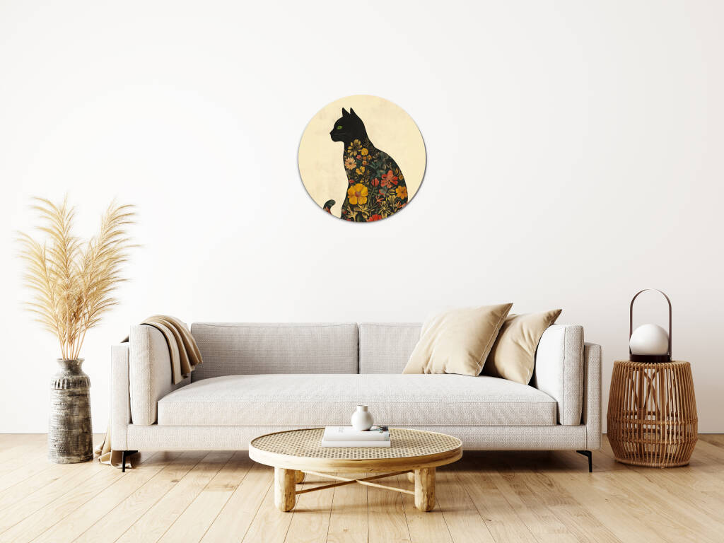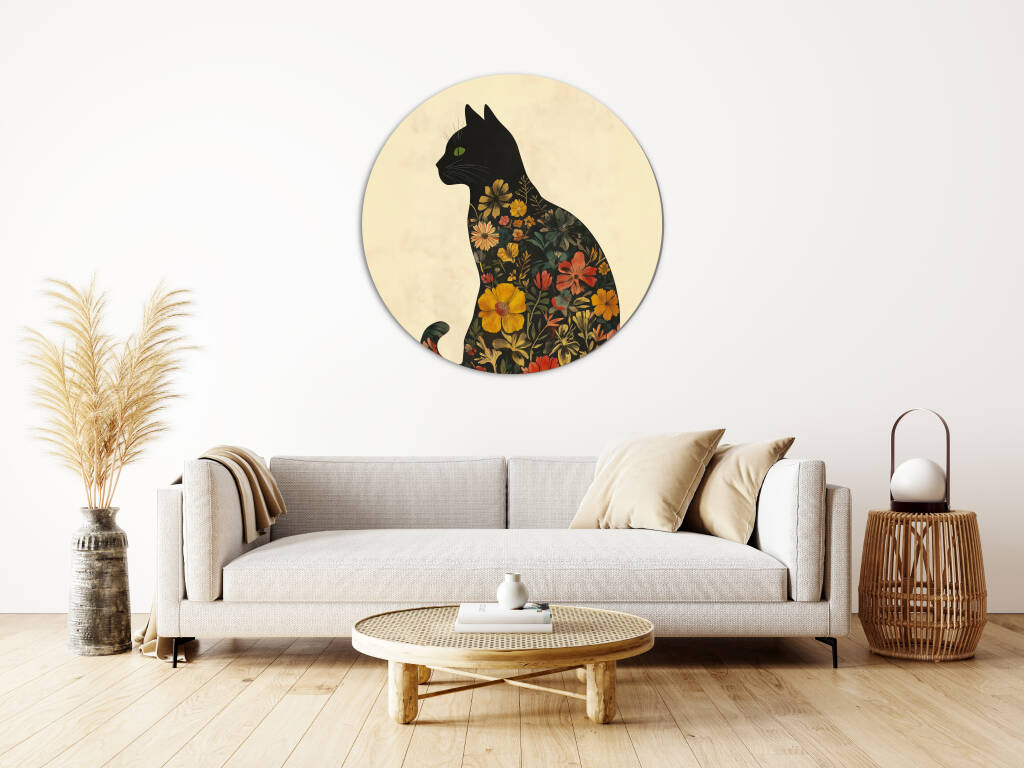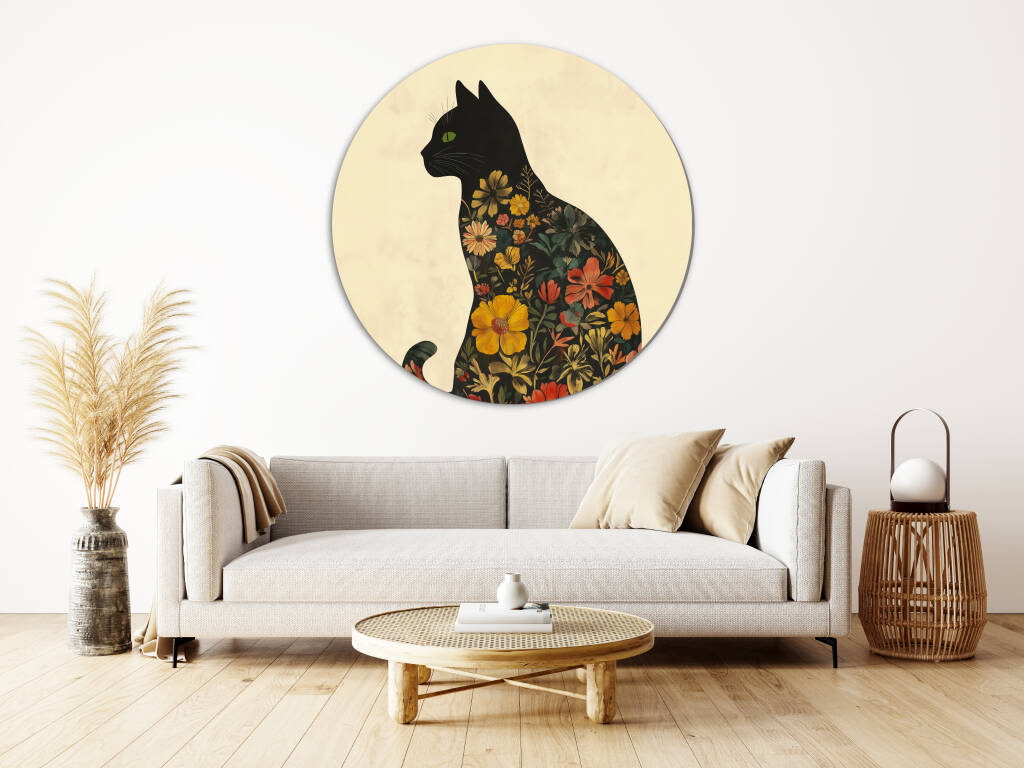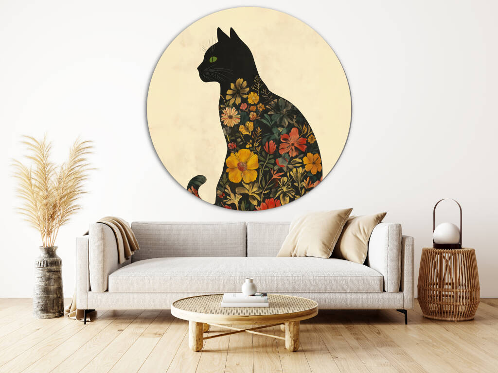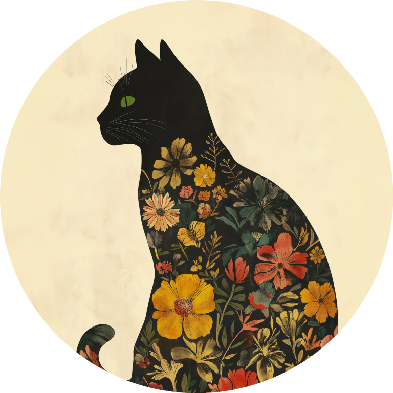 Flower Loving Cat toont een elegante zwarte kat waarvan het silhouet gevuld is met een weelderige bloementuin in warme herfstkleuren. De delicate bloemen in tinten van geel, oranje en oker creëren een prachtig contrast met de donkere kattencontouren. Dit poëtische kunstwerk combineert de mystiek van katten met de schoonheid van botanische kunst op een unieke en betoverende manier. Perfect voor kattenliefhebbers die ook een zwak hebben voor bloemenkunst en decoratieve elegantie.