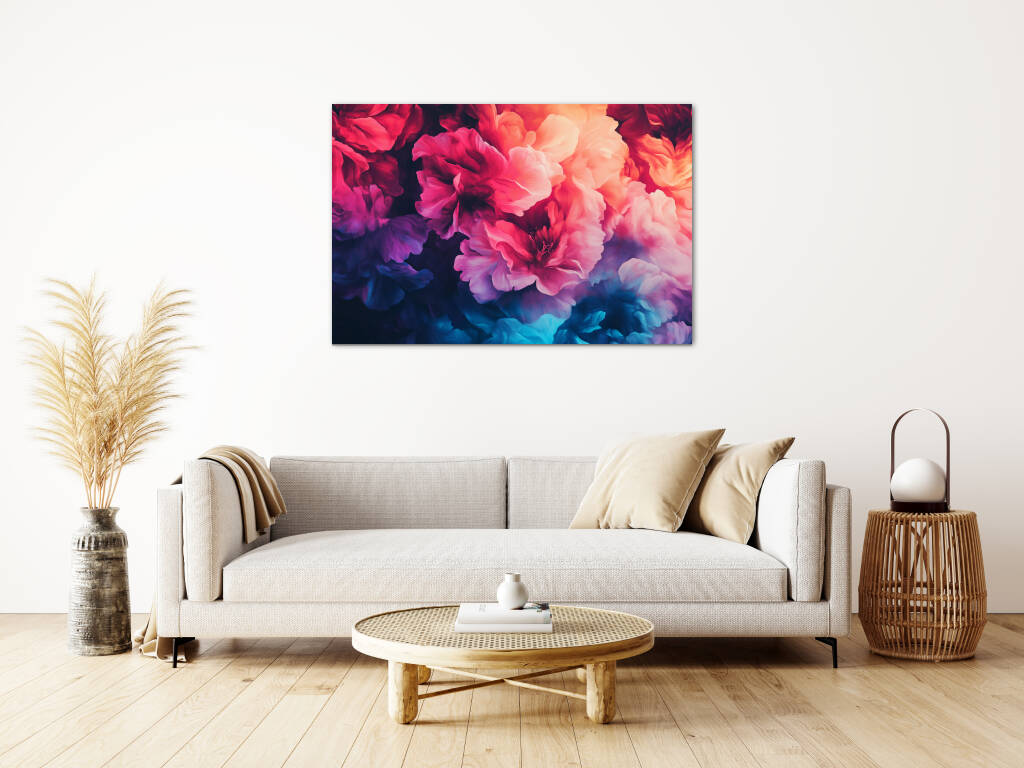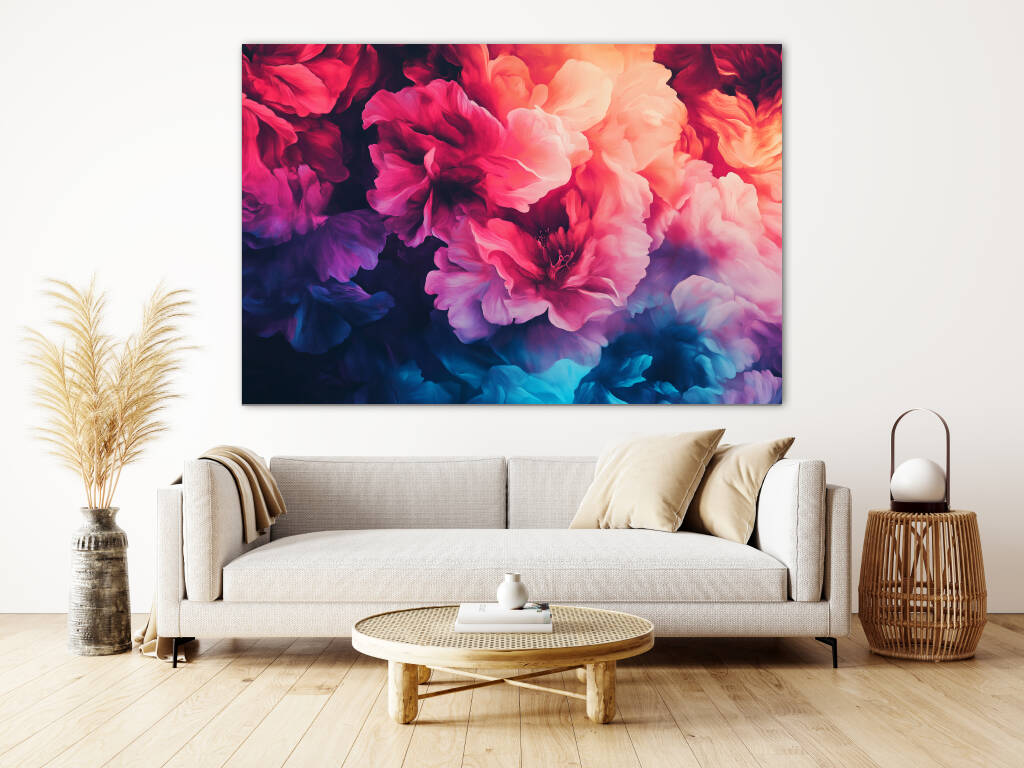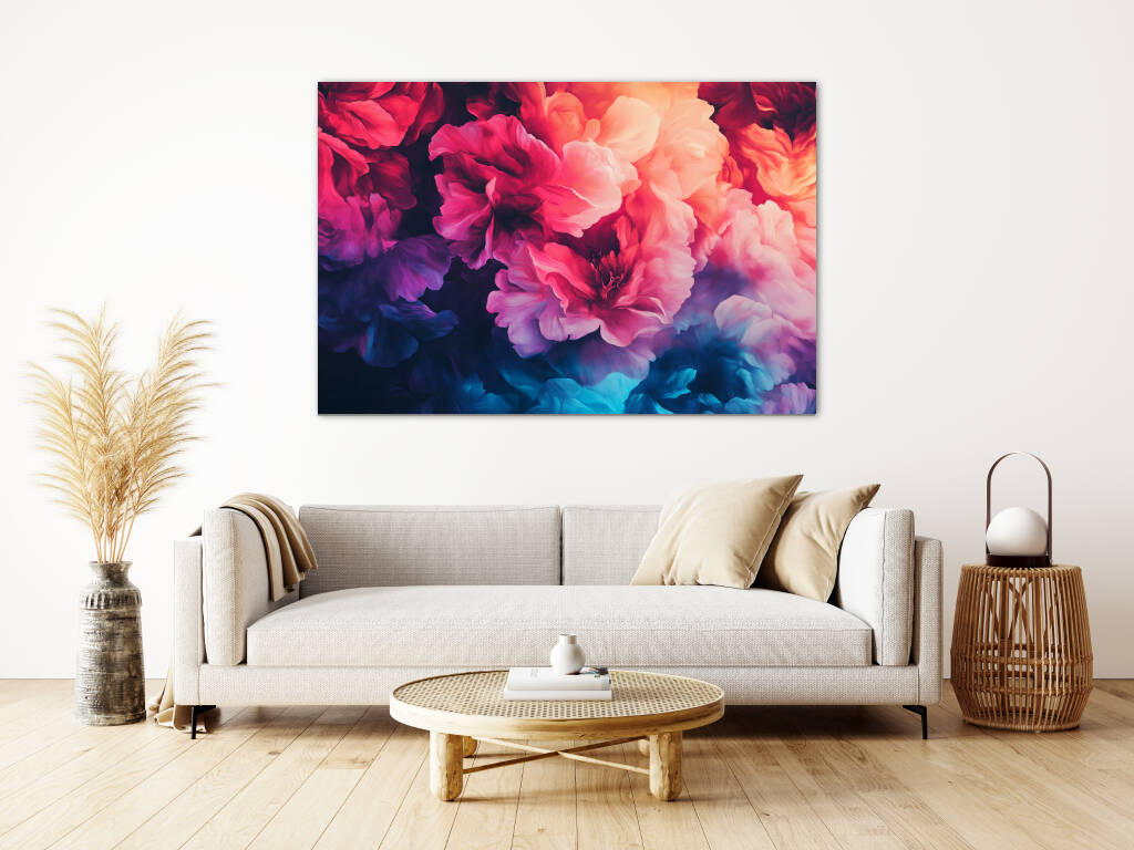 Weavy Flowers toont een betoverende cascade van bloemen die vloeiend van warm roze naar koel blauw golven in een hypnotiserende dans van kleur. De zachte, golvende bloemblaadjes creƫren een dromerig effect dat doet denken aan zijden stoffen in de wind. Dit artistieke bloemenarrangement straalt beweging en levendigheid uit op een manier die zowel modern als tijdloos is. Perfect voor wie houdt van bloemenkunst met een contemporary twist en dramatische kleurgradiaties.