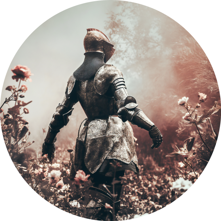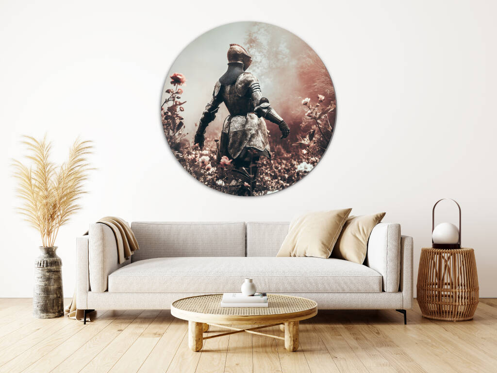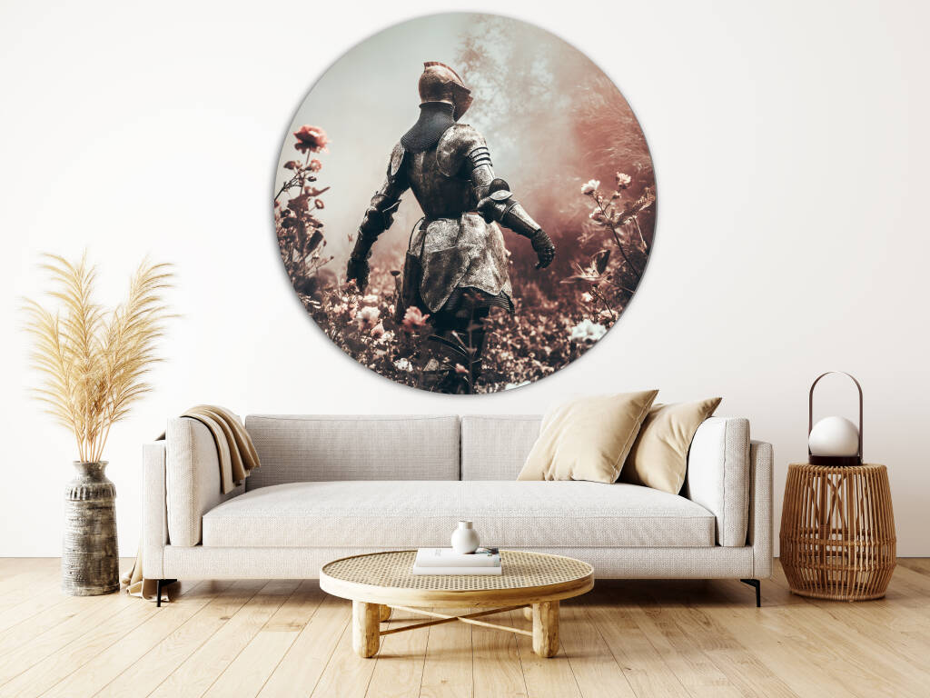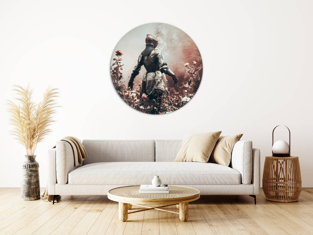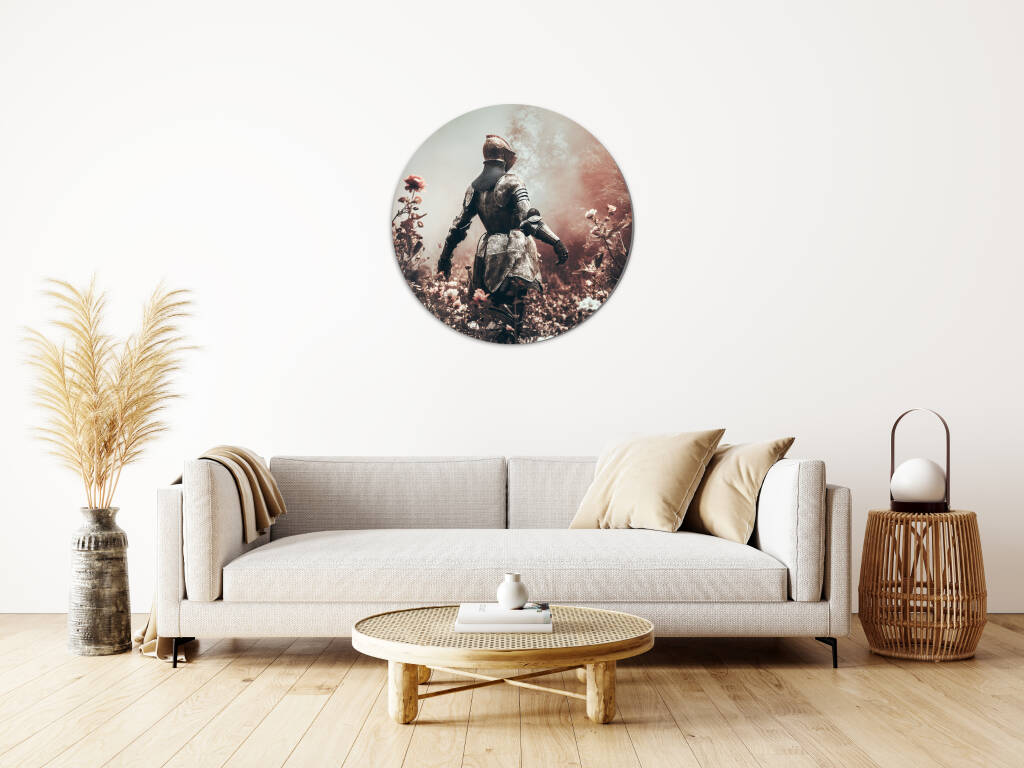 Female Knight toont een machtige krijgsvrouw in volledig metalen harnas die statig door een dromerig bloemenveld wandelt. De contrasten tussen de harde, koude wapenrusting en de zachte, delicate bloemen creëren een poëtische spanning tussen kracht en kwetsbaarheid. De warme, mistige atmosfeer en de vintage kleurenpalet geven het kunstwerk een romantische, nostalgische uitstraling die de tijdloze mythe van ridderschap en moed belichaamt. Dit krachtige symbool van vrouwelijke sterkte en gratie brengt inspiratie en elegantie in elke ruimte.