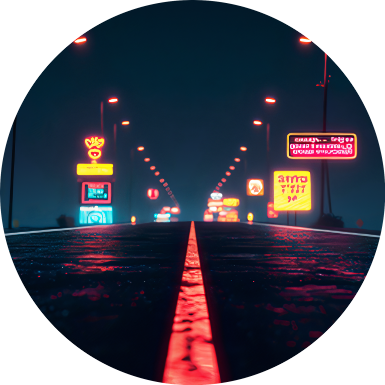 Pink lit Road toont een hypnotiserend nachtelijk stadslandschap waar neonlichten de natte straat in roze en blauwe tinten doen gloeien. De cinematografische sfeer en het sterke perspectief trekken je de mysterieuze nacht in, langs flikkerende reclameborden en straatlantaarns. Dit atmosferische kunstwerk vangt de romantiek van nachtelijke stadsavonturen en de betovering van neon-verlichte straten. Perfect voor liefhebbers van urban fotografie en de nostalgische charme van nachtsteden.