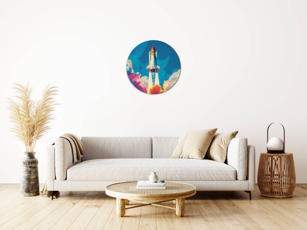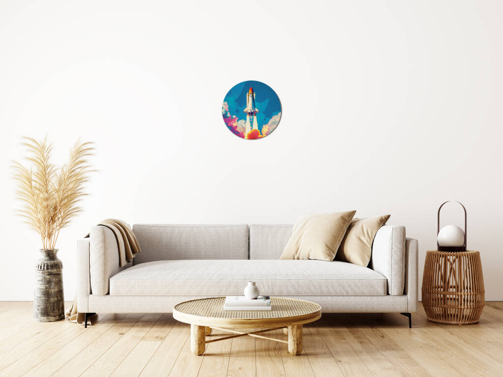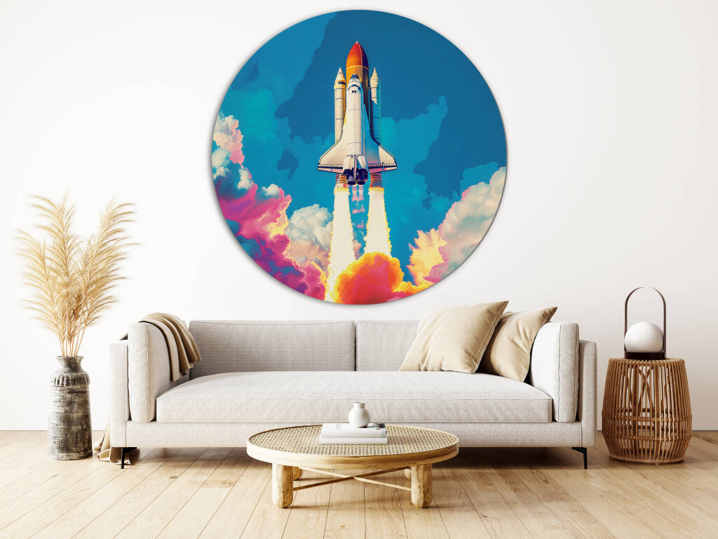 The Launch vangt het adembenemende moment waarin een spaceshuttle de aarde verlaat en de sterren tegemoet vliegt. De explosieve kleuren van de vuurstraal contrasteren spectaculair met de serene blauwe hemel en roze wolkenformaties. Dit iconische beeld van menselijke ambitie en technologische vooruitgang straalt kracht en hoop uit. Perfect voor dromerige zielen en ruimtevaart-enthousiastelingen die geloven in de onbegrensde mogelijkheden van de mensheid.