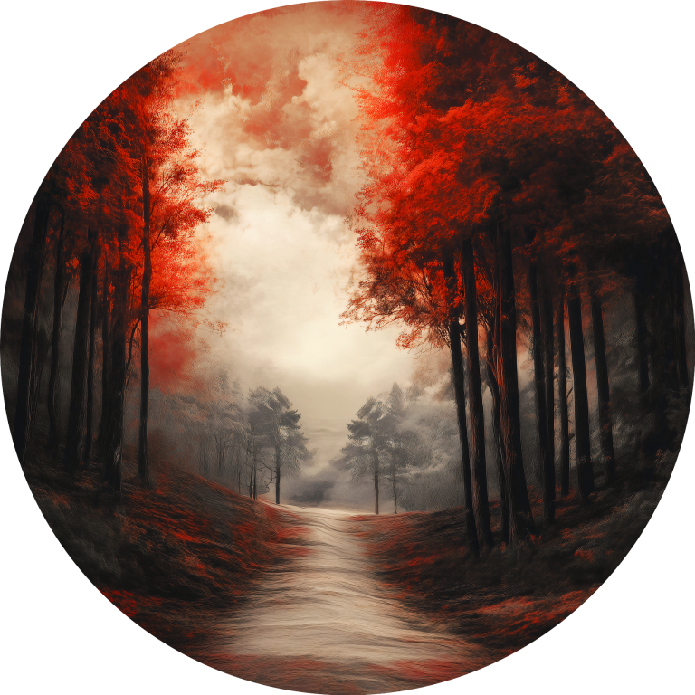 Red Forest toont een betoverende wandeling door een mystiek bos waar herfstbladeren in vurige roodtinten een dramatisch natuurschouwspel creëren. Het zachte licht dat door de boomkronen valt, werpt een dromerige gloed over het bospad dat zich uitstrekt naar de verte. De warme rode en oranje tinten contrasteren prachtig met de donkere boomstammen en scheppen een sfeer van romantiek en avontuur. Een inspirerend landschap dat de schoonheid van de natuur in al zijn seizoensglorie vastlegt.