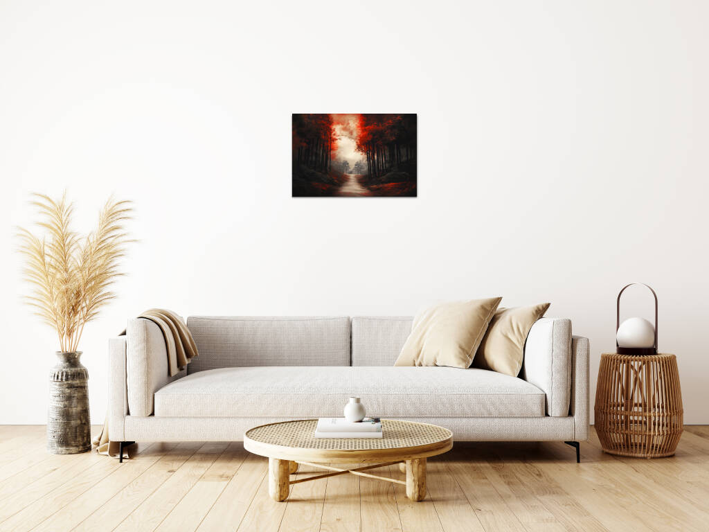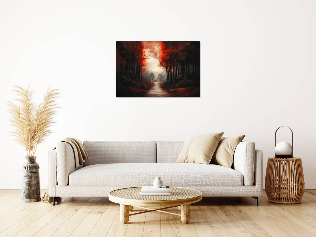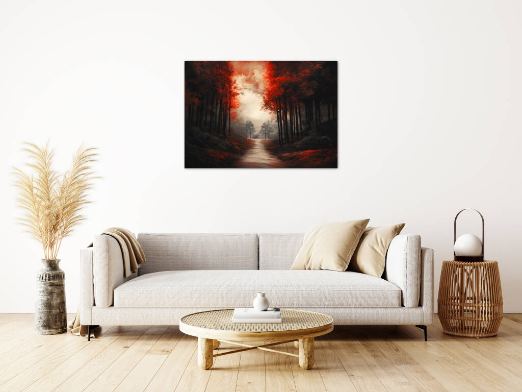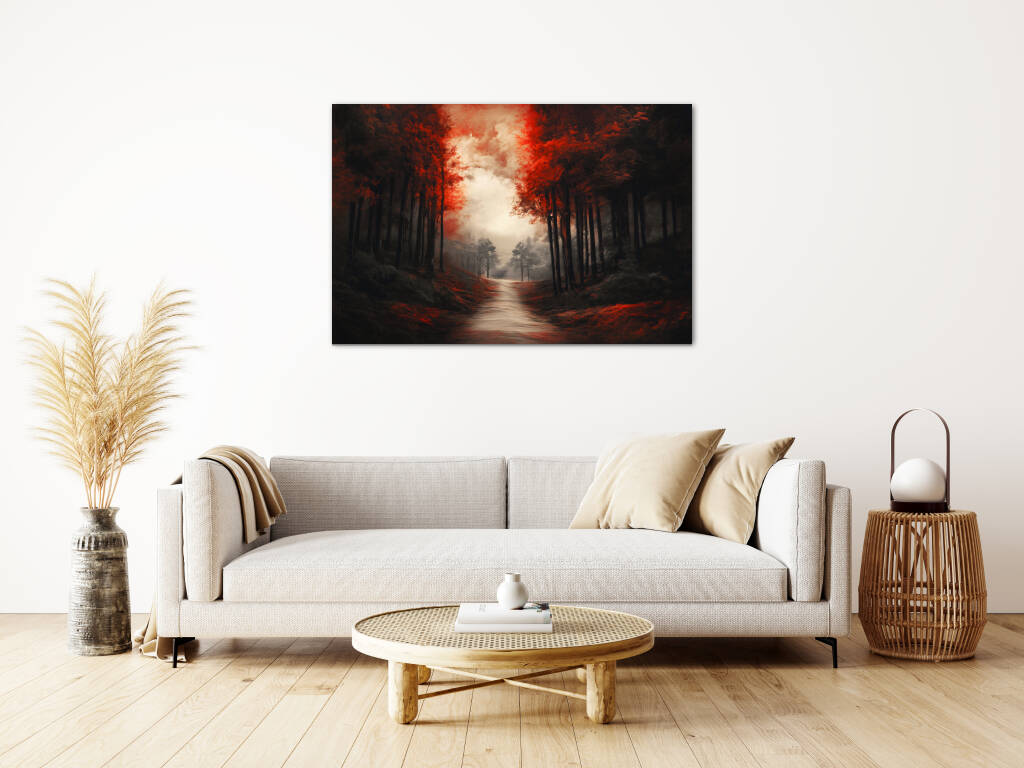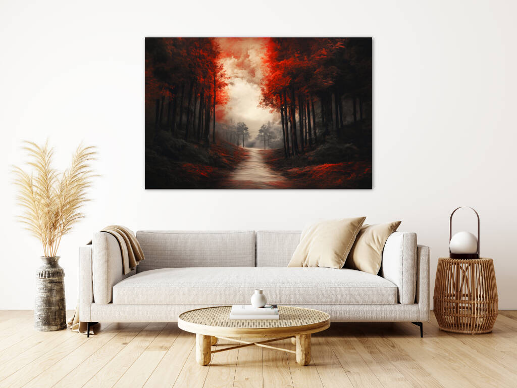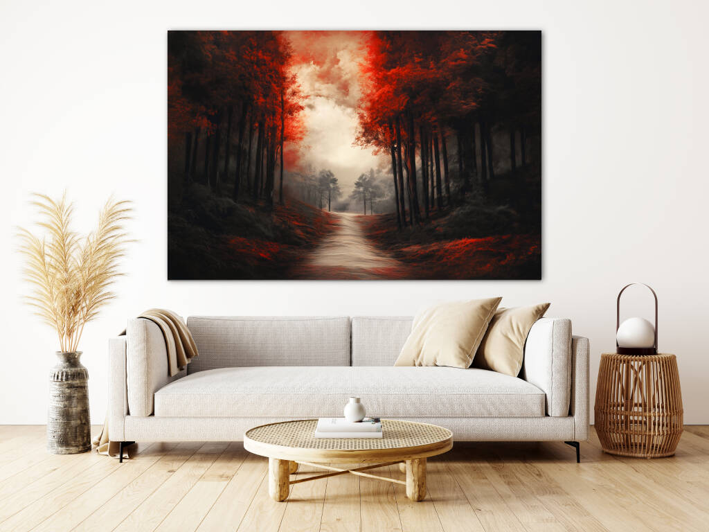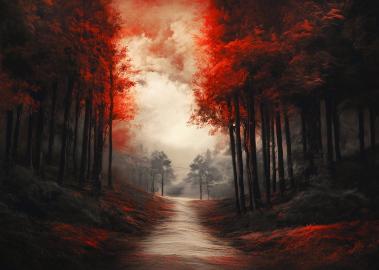 Red Forest toont een betoverende wandeling door een mystiek bos waar herfstbladeren in vurige roodtinten een dramatisch natuurschouwspel creƫren. Het zachte licht dat door de boomkronen valt, werpt een dromerige gloed over het bospad dat zich uitstrekt naar de verte. De warme rode en oranje tinten contrasteren prachtig met de donkere boomstammen en scheppen een sfeer van romantiek en avontuur. Een inspirerend landschap dat de schoonheid van de natuur in al zijn seizoensglorie vastlegt.