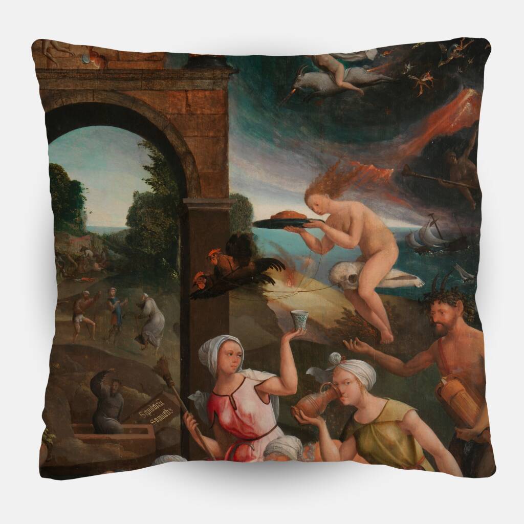 Saul bij de Heks van Endor presenteert een complex bijbels tafereel vol mystiek en drama. Het werk toont koning Saul die in wanhoop de heks van Endor raadpleegt om de geest van de profeet Samuel op te roepen. De compositie is rijk aan symboliek en verhalende details - van de magische rituelen rondom de heks tot de verschrikkingen die zich in de achtergrond afspelen. De warme aardetinten contrasteren met de koele blauwe lucht, waarin bovennatuurlijke verschijningen zweven. Dit Renaissance-meesterwerk combineert het religieuze verhaal met elementen van volksgeloof en magie, waarbij elke figuur een rol speelt in dit drama van macht, wanhoop en het bovennatuurlijke. Een fascinerende verkenning van de grenzen tussen het aardse en het spirituele rijk.