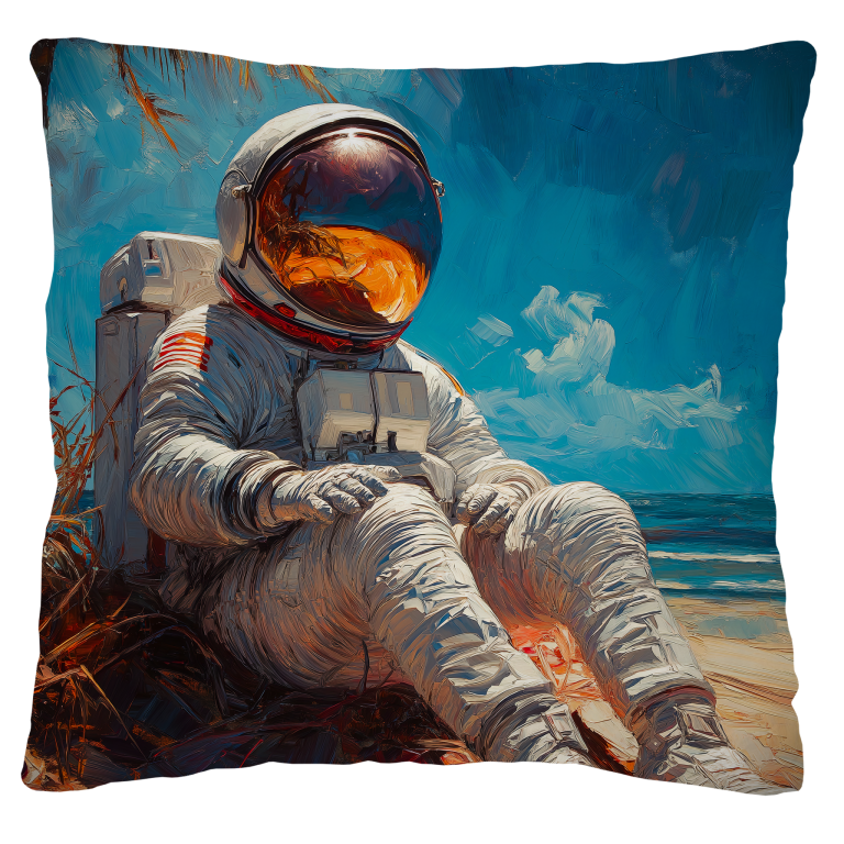 Trip to the Sun toont een intrigerend contrast tussen ruimte en aarde. Het schilderij vangt een ontspannen astronaut die uitrust onder een palmboom aan een zonnig strand, waardoor een speelse en surrealistische sfeer ontstaat. De levendige kleuren en losse penseelstreken geven het kunstwerk een unieke, dromerige uitstraling. Ideaal als statement piece voor wie houdt van gedurfde, moderne kunst met een twist. Perfect om elke ruimte een creatief en inspirerend karakter te geven.