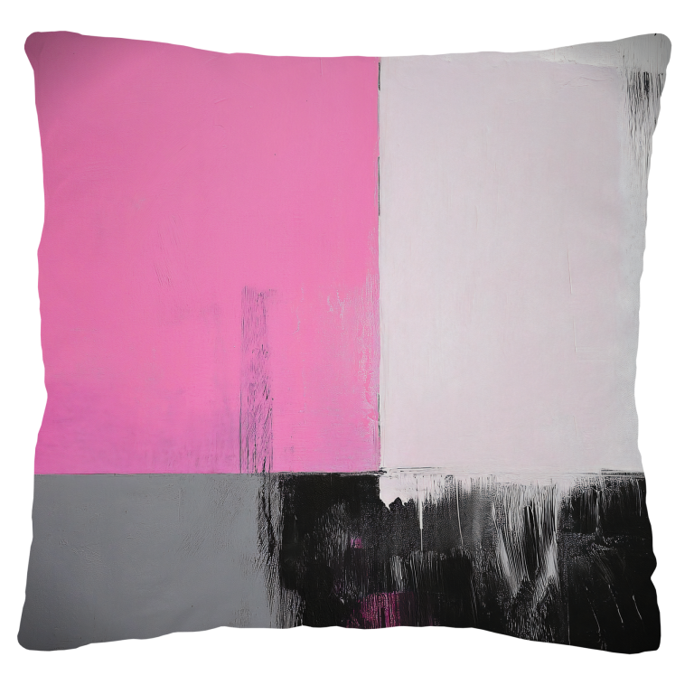 Black and Pink Planes, is een abstract schilderij dat bestaat uit een compositie van rechthoekige vlakken in roze, wit, zwart en grijs. De kleuren zijn ruw aangebracht met zichtbare penseelstreken, wat het een dynamische en gestructureerde uitstraling geeft. Het werk heeft een moderne en minimalistische stijl, perfect passend bij een eigentijds interieur. De contrasten tussen de zachte en harde kleuren zorgen voor een visueel gebalanceerd geheel.
