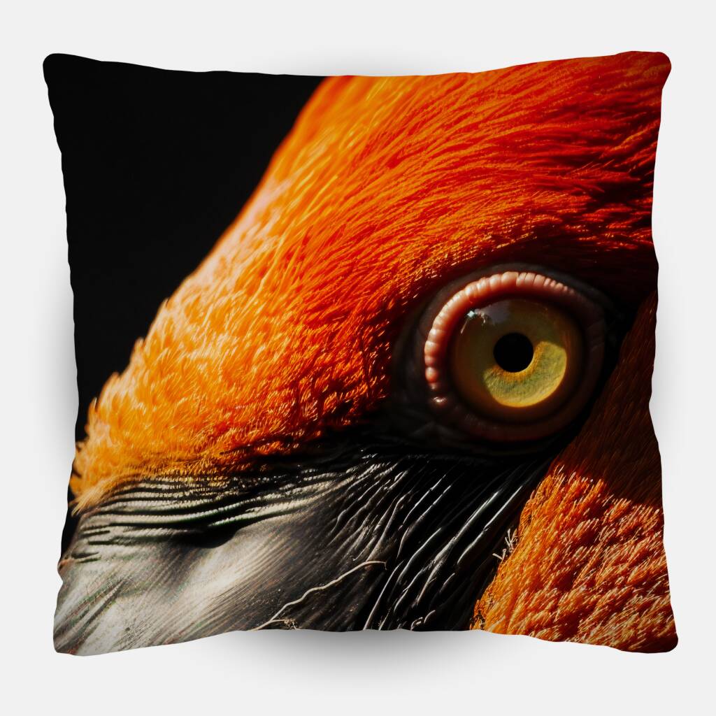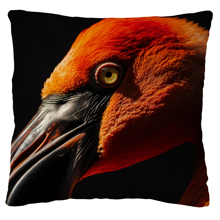 Dark Flamingo toont een close-up van een majestueuze flamingo, gehuld in een diep zwart achtergrond die de vurige oranjerode tinten van zijn veren benadrukt. Het scherpe contrast tussen licht en schaduw accentueert de textuur van de veren en de intense blik in het oog van de vogel, waardoor een hypnotiserend effect ontstaat. De gebogen snavel met zijn glanzende zwarte oppervlak voegt een extra laag van elegantie en mysterie toe. Dit kunstwerk straalt kracht en verfijning uit, waardoor het een opvallend en intrigerend element vormt in elk interieur.