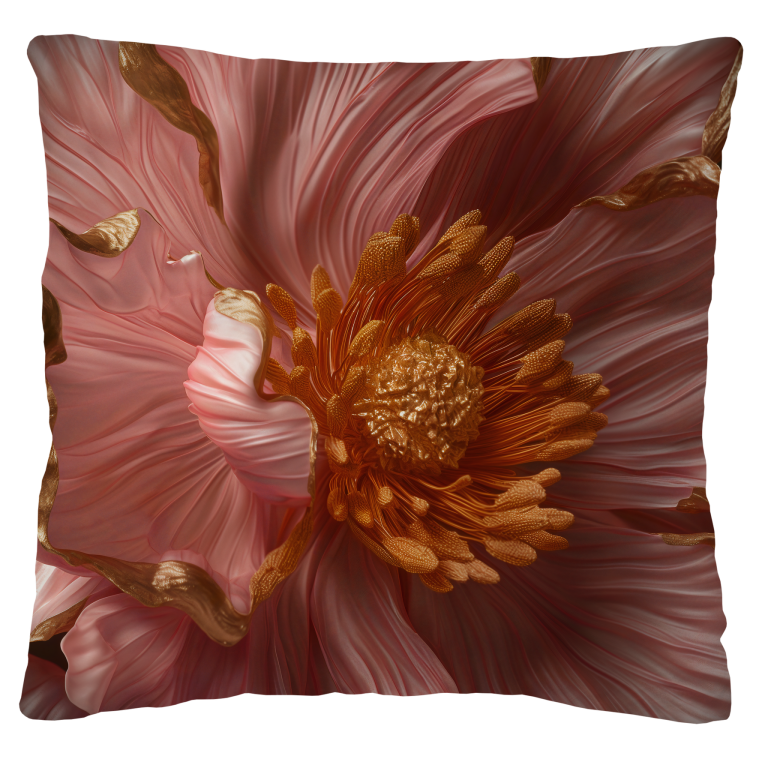 Pinkgold Flower toont een weelderige bloem met elegante, golvende bloemblaadjes in een zachte roze tint, verfijnd met luxueuze gouden randen. De gedetailleerde textuur en subtiele glans geven de compositie een sculpturaal effect, waardoor de bloem een driedimensionale uitstraling krijgt. Het hart van de bloem straalt warmte uit met zijn rijke, goudoranje tinten, wat een harmonieuze balans creëert tussen zachtheid en luxe. Dit kunstwerk ademt elegantie en verfijning, perfect voor een chique en stijlvolle interieursetting.