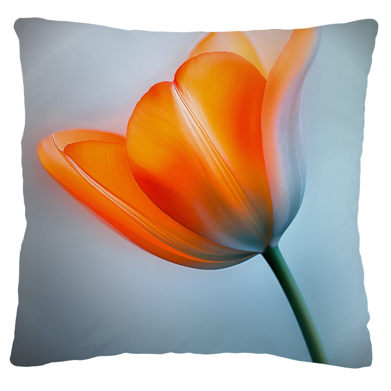 Prismatic Tulip toont een enkele tulp die baadt in etherisch licht, waarbij de bloemblaadjes gloeien in warme oranje tinten tegen een zachte pastelachtergrond. De transparante kwaliteit van de bloem onthult elke delicate ader en textuur, terwijl het licht speels door de blaadjes danst. Dit minimalistische meesterwerk viert de pure essentie van Nederlandse bloemenschoonheid. Perfect voor liefhebbers van botanische elegantie en de tijdloze charme van tulpen.