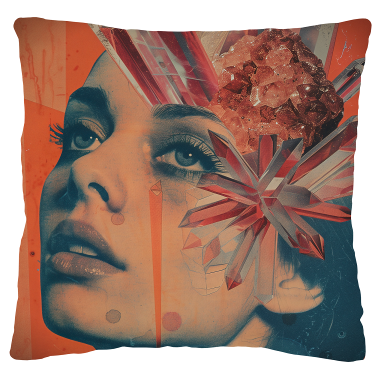 Crystal Migraine toont een surrealistisch portret waarin kristallen vormen explosief groeien uit het hoofd van een mysterieuze vrouw tegen een levendige oranje achtergrond. De abstracte elementen en de vintage pop-art esthetiek creëren een krachtige visuele metafoor voor creativiteit en transformatie. Dit gedurfde kunstwerk combineert realisme met fantasie op een manier die zowel intrigeert als inspireert. Perfect voor liefhebbers van conceptuele kunst die ruimte willen geven aan diepere betekenissen en artistieke expressie.