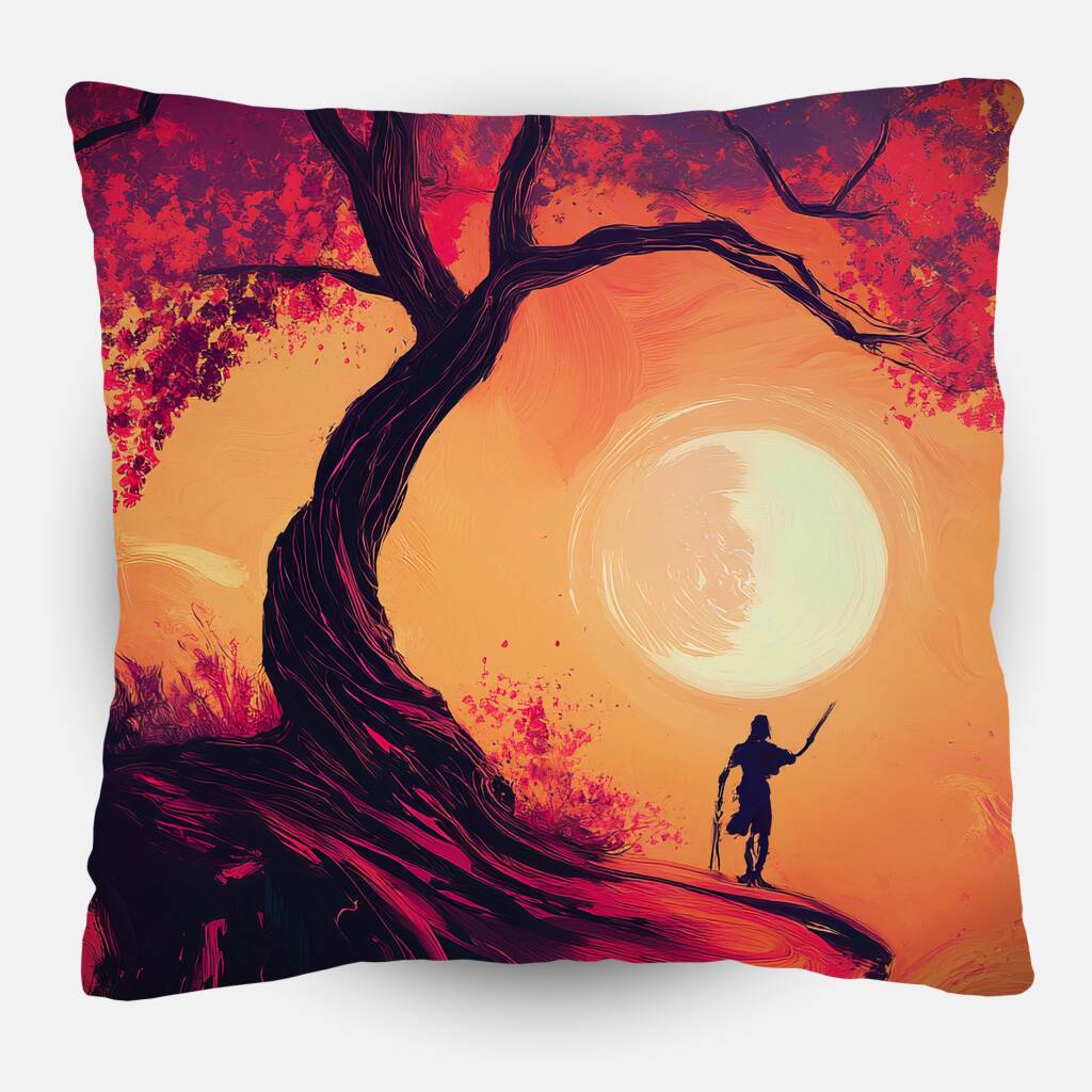 The Elder Tree toont een magische wereld waar een eeuwenoude boom troont op een klif terwijl een eenzame figuur de adembenemende zonsondergang aanschouwt. De levendige vuurrode en oranje tinten van de hemel contrasteren prachtig met de donkere silhouetten, waardoor een atmosfeer van mystiek en avontuur ontstaat. Dit epische landschap straalt de grootsheid van de natuur en de kracht van de verbeelding uit. Perfect voor liefhebbers van fantasy-kunst en dramatische landschappen die elke ruimte een gevoel van verwondering geven.