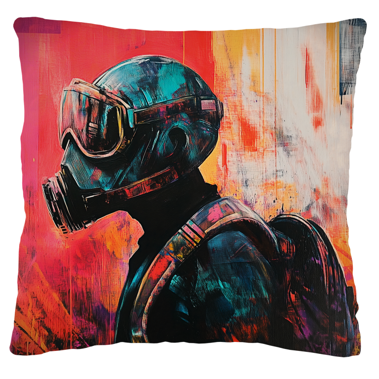 Pandemic presenteert een krachtige artistieke interpretatie van onze moderne tijd waarin een figuur met gasmasker wordt omgeven door expressieve verfstreken in levendige oranje, rode en blauwe tinten. De grunge-achtige texturen en de abstracte kleurvlakken creëren een gevoel van chaos en verandering, terwijl de centrale figuur stoicisme en doorzettingsvermogen uitstraalt. De street art-esthetiek en de rauwe energie van het kunstwerk maken het tot een krachtige sociale commentaar. Dit provocerende kunstwerk brengt de complexiteit van onze tijd tot uiting en nodigt uit tot reflectie over veerkracht en aanpassing.