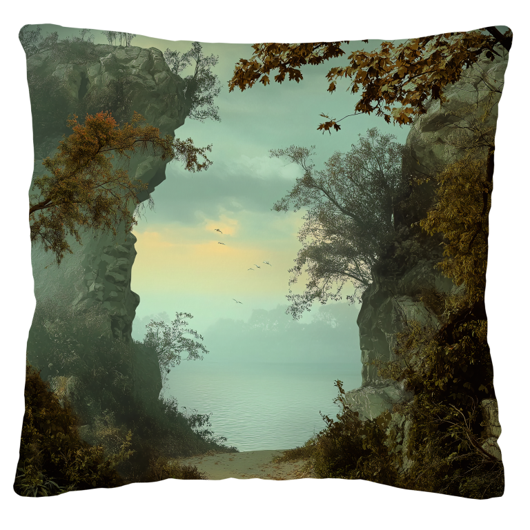 Unexpected Gorge onthult een verborgen natuurpoort waar oude rotswanden een geheimzinnige doorgang vormen naar een zachte, lichtgevende horizon. De warme herfstkleuren van het gebladerte contrasteren prachtig met de koele grijstinten van de steen, terwijl vogels in de verte zweven als symbolen van vrijheid. Dit romantische landschap in klassieke stijl straalt mystiek en ontdekking uit. Perfect voor liefhebbers van betoverende natuurscenes die de verbeelding prikkelen en een gevoel van avontuur oproepen.
